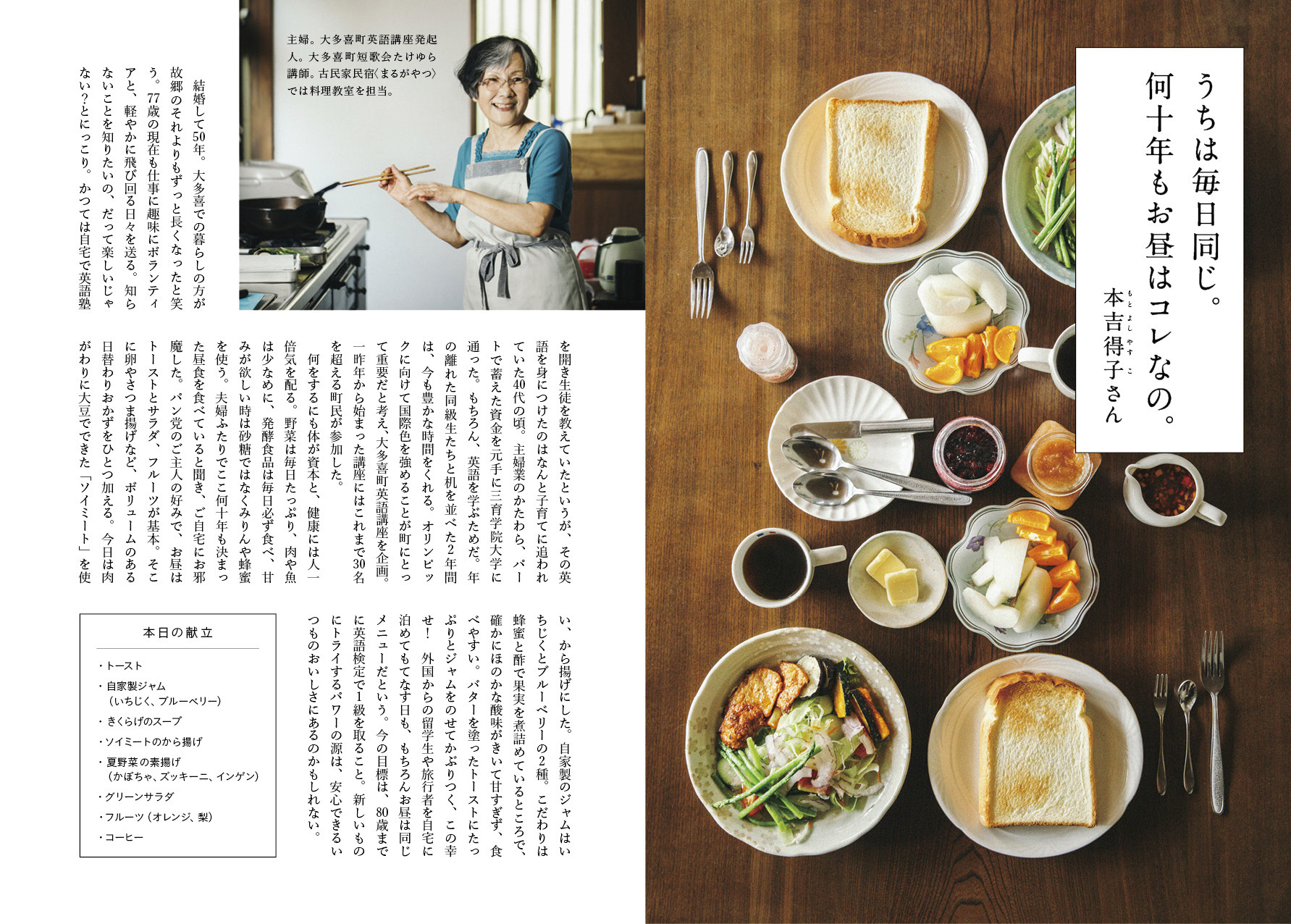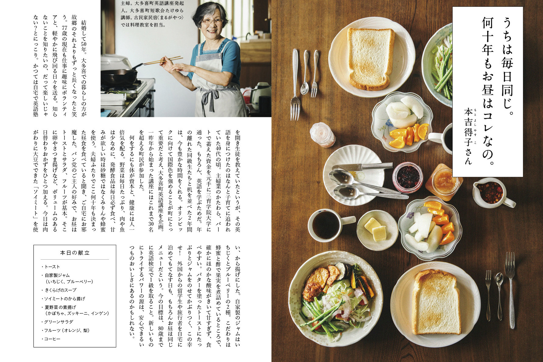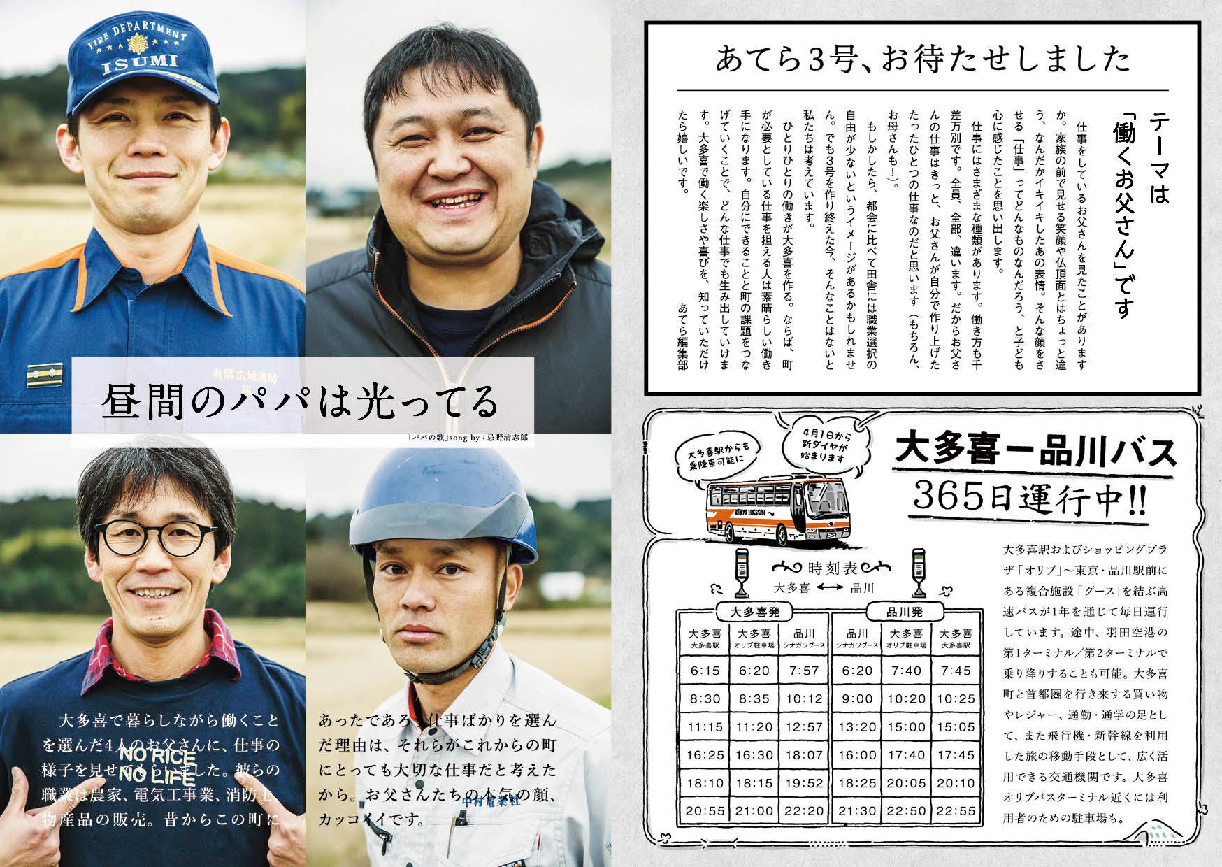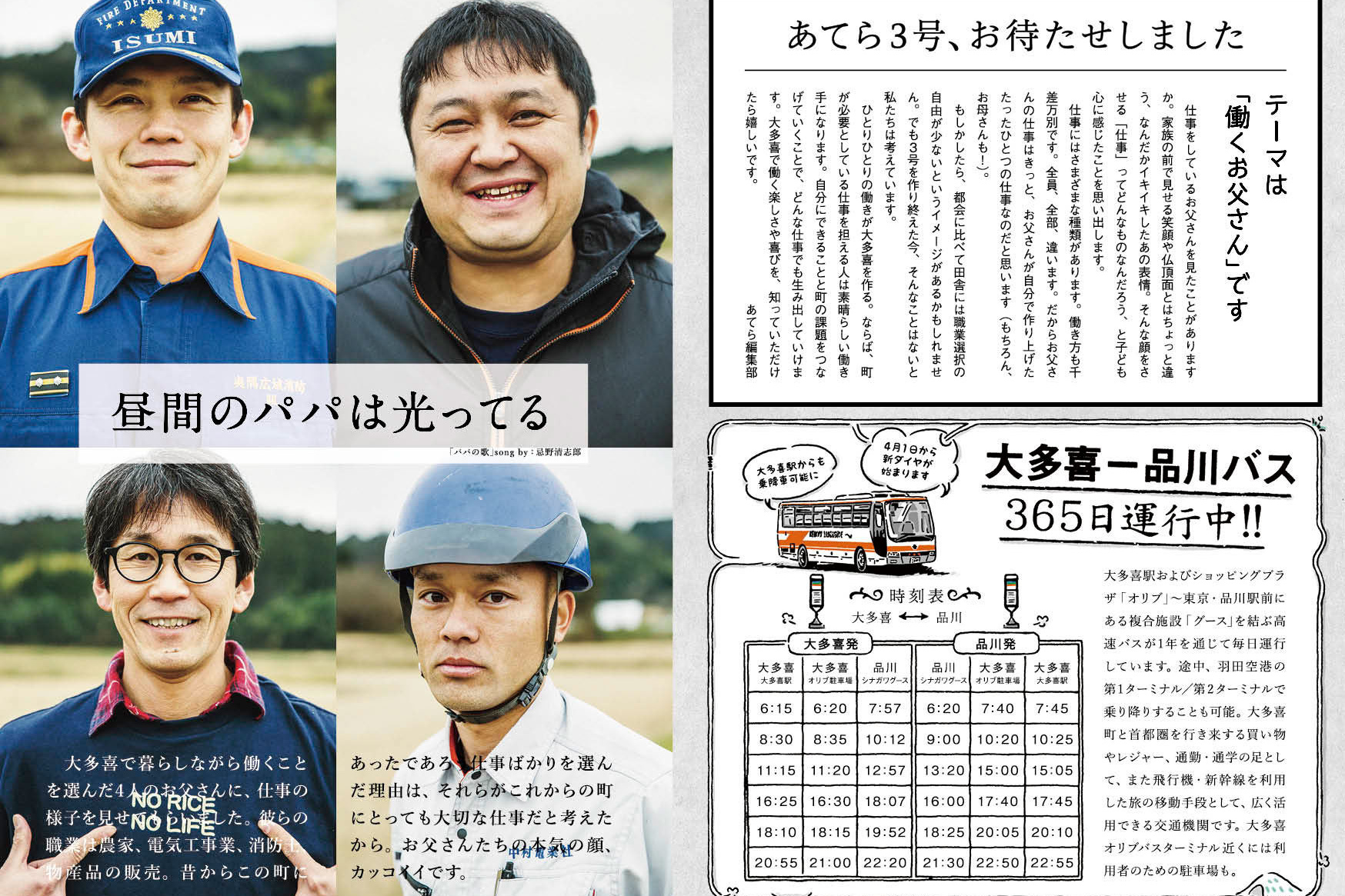 10 いつも、変わらないこと 09 ここからさらに、30分 08 お昼ですよ 07 大多喜の歩き方 06 子どもと 05 たけのこ 04 大多喜メイド 03 働くお父さん 02 大多喜のおいしい 01 次の世代に伝えたいことはなんですか TOP TOP PAGEへ戻る >>